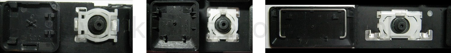 - Om het juiste model te kiezen, vergelijk de lege plek op jouw toetsenbord met de onderstaande foto’s, of verwijder de toets “A” – daaronder zit altijd een middelgrote clip.