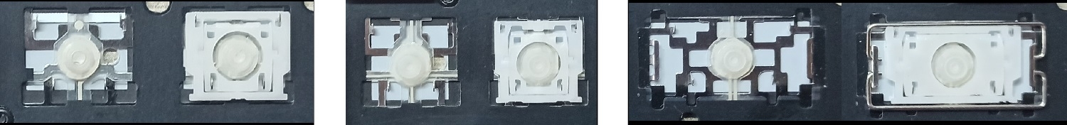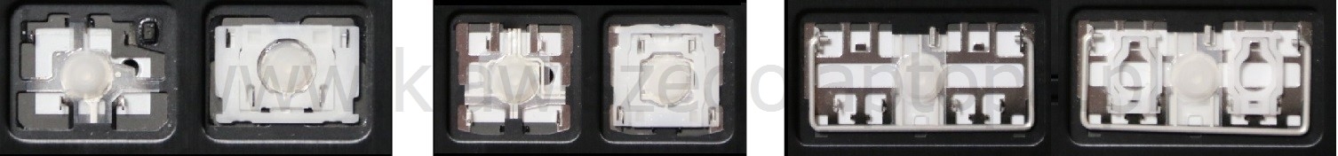- Bij de meeste toetsenborden die er van buiten identiek uitzien, werden verschillende soorten clips onder de toetsen gebruikt.