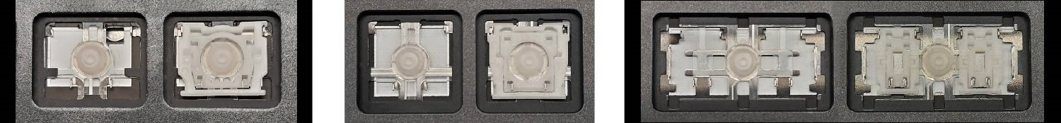 - Bij de meeste toetsenborden die er van buiten identiek uitzien, werden verschillende soorten clips onder de toetsen gebruikt.