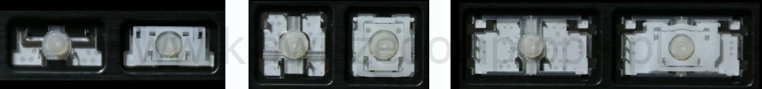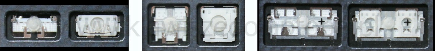 - Bij de meeste toetsenborden die er van buiten identiek uitzien, werden verschillende soorten clips onder de toetsen gebruikt.