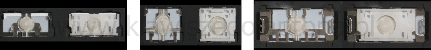 - Om het juiste model te kiezen, vergelijk de lege plek op jouw toetsenbord met de onderstaande foto’s, of verwijder de toets “A” – daaronder zit altijd een middelgrote clip.