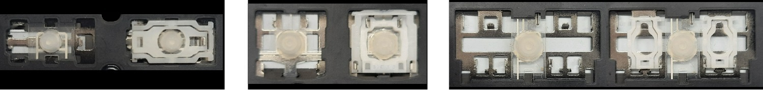 - Bij de meeste toetsenborden die er van buiten identiek uitzien, werden verschillende soorten clips onder de toetsen gebruikt.