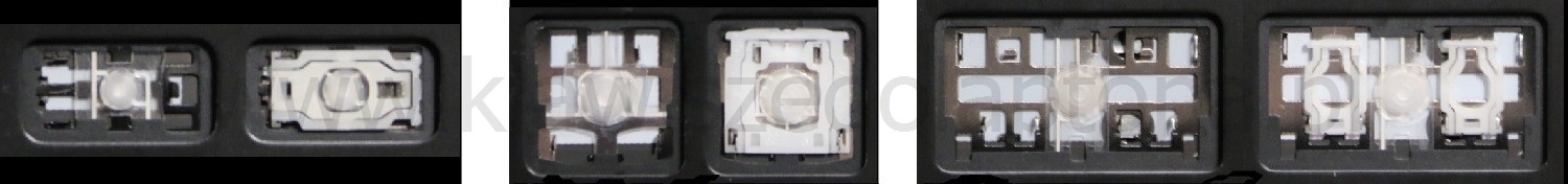 - Om het juiste model te kiezen, vergelijk de lege plek op jouw toetsenbord met de onderstaande foto’s, of verwijder de toets “A” – daaronder zit altijd een middelgrote clip.