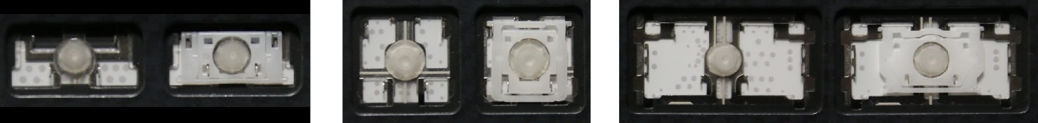 - Bij de meeste toetsenborden die er van buiten identiek uitzien, werden verschillende soorten clips onder de toetsen gebruikt.