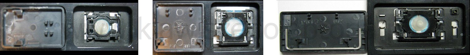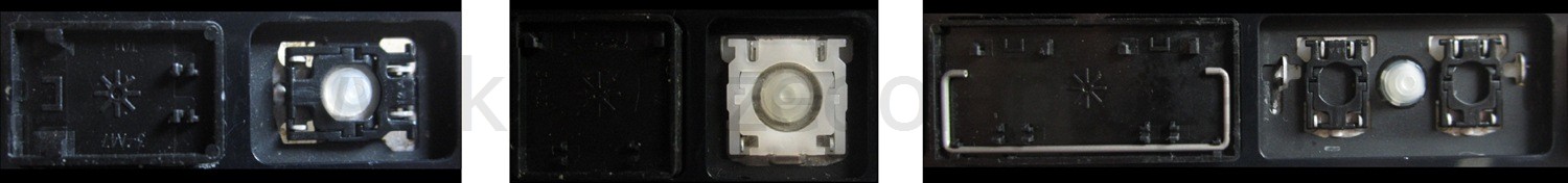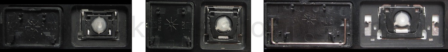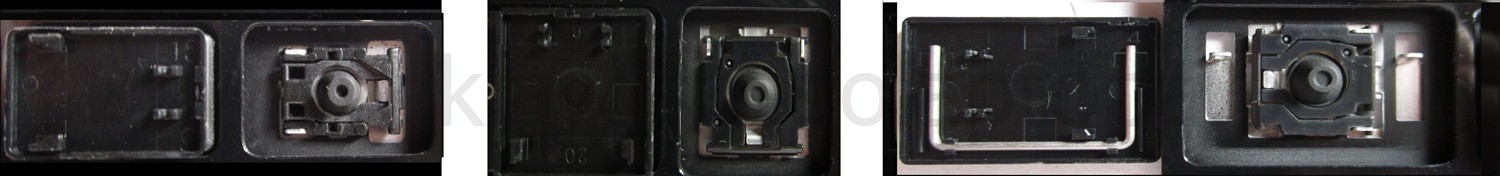 - Om het juiste model te kiezen, vergelijk de lege plek op jouw toetsenbord met de onderstaande foto’s, of verwijder de toets “A” – daaronder zit altijd een middelgrote clip.