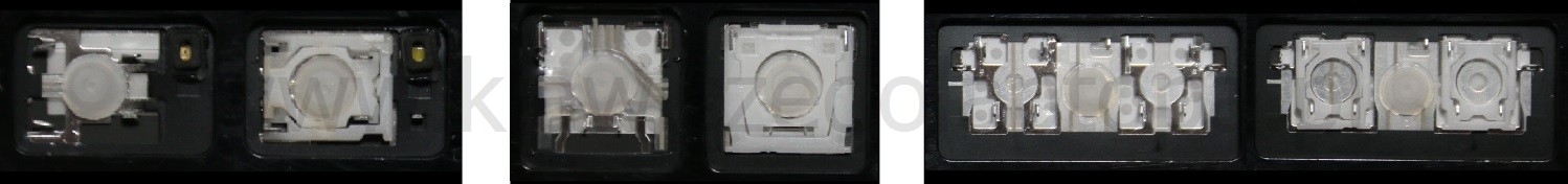 - Bij de meeste toetsenborden die er van buiten identiek uitzien, werden verschillende soorten clips onder de toetsen gebruikt.