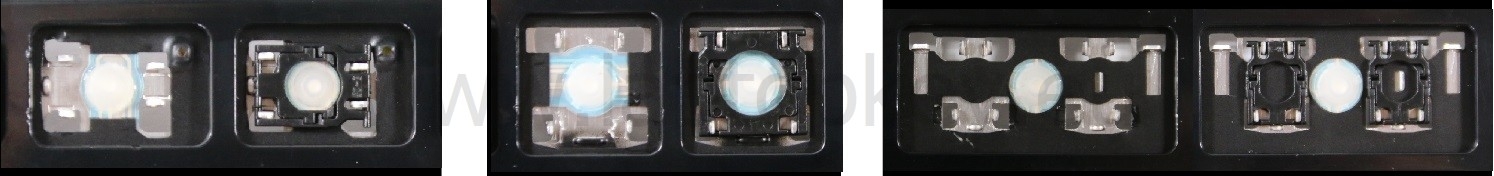 - Om het juiste model te kiezen, vergelijk de lege plek op jouw toetsenbord met de onderstaande foto’s, of verwijder de toets “A” – daaronder zit altijd een middelgrote clip.