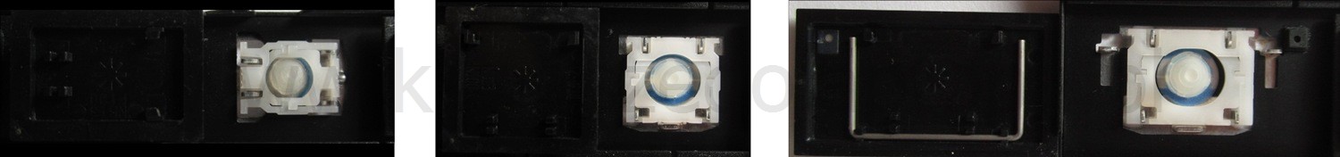 - Om het juiste model te kiezen, vergelijk de lege plek op jouw toetsenbord met de onderstaande foto’s, of verwijder de toets “A” – daaronder zit altijd een middelgrote clip.