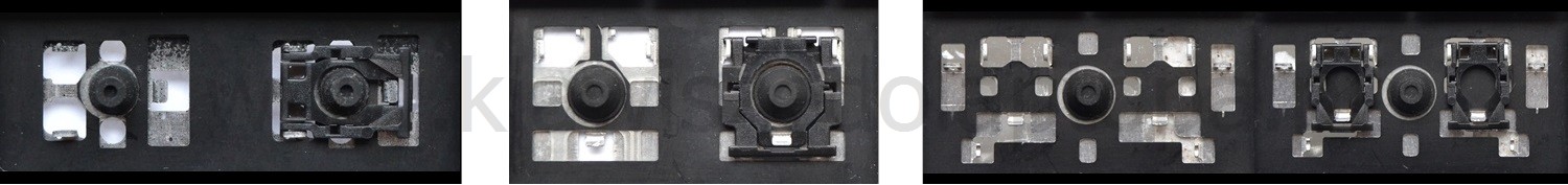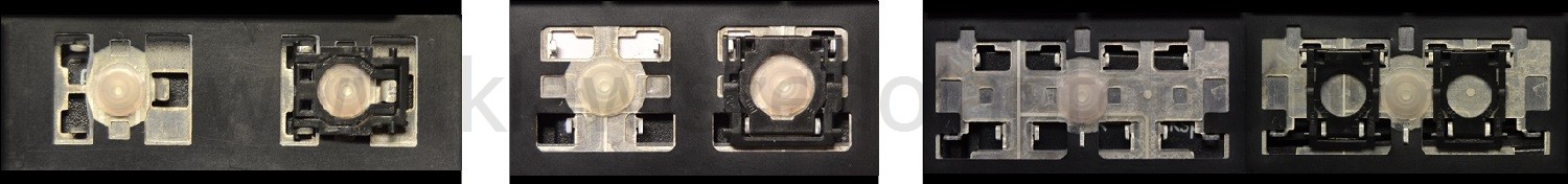 - Bij de meeste toetsenborden die er van buiten identiek uitzien, werden verschillende soorten clips onder de toetsen gebruikt.