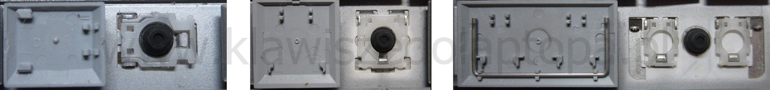 - Om het juiste model te kiezen, vergelijk de lege plek op jouw toetsenbord met de onderstaande foto’s, of verwijder de toets “A” – daaronder zit altijd een middelgrote clip.