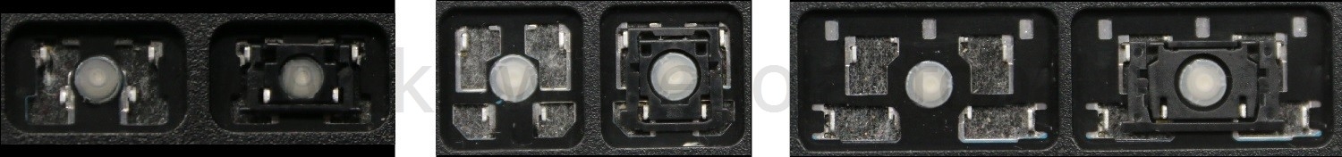 - Om het juiste model te kiezen, vergelijk de lege plek op jouw toetsenbord met de onderstaande foto’s, of verwijder de toets “A” – daaronder zit altijd een middelgrote clip.