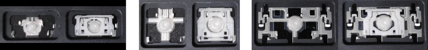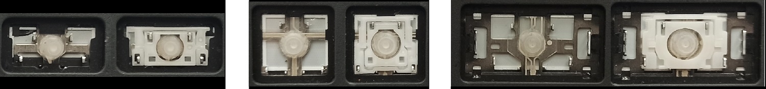 - Bij de meeste toetsenborden die er van buiten identiek uitzien, werden verschillende soorten clips onder de toetsen gebruikt.