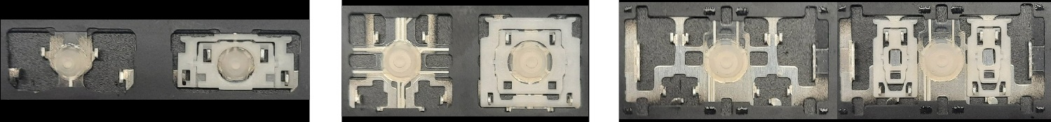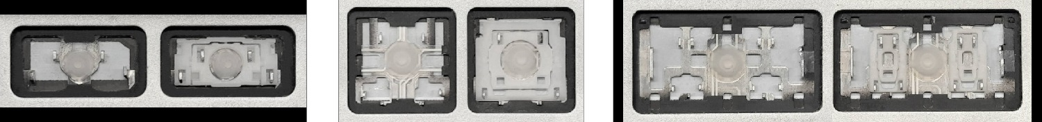 - Om het juiste model te kiezen, vergelijk de lege plek op jouw toetsenbord met de onderstaande foto’s, of verwijder de toets “A” – daaronder zit altijd een middelgrote clip.