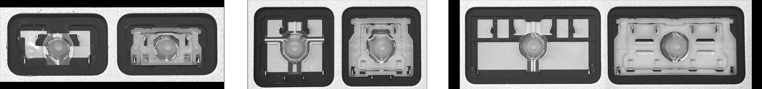 - Om het juiste model te kiezen, vergelijk de lege plek op jouw toetsenbord met de onderstaande foto’s, of verwijder de toets “A” – daaronder zit altijd een middelgrote clip.