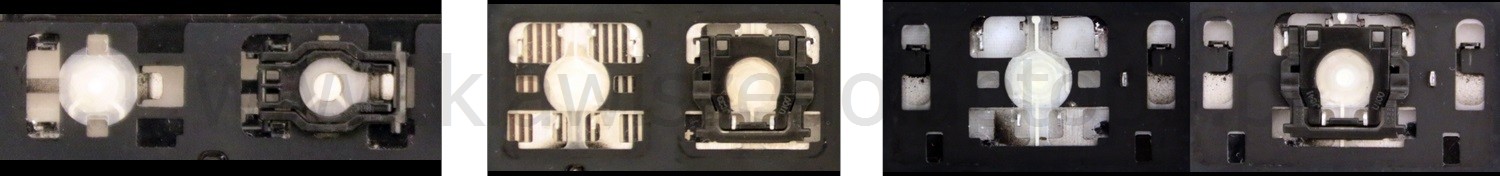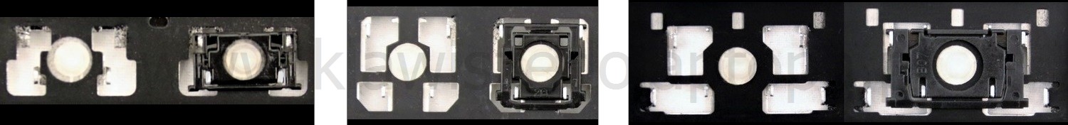 - Bij de meeste toetsenborden die er van buiten identiek uitzien, werden verschillende soorten clips onder de toetsen gebruikt.