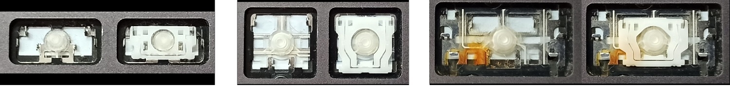 - Bij de meeste toetsenborden die er van buiten identiek uitzien, werden verschillende soorten clips onder de toetsen gebruikt.