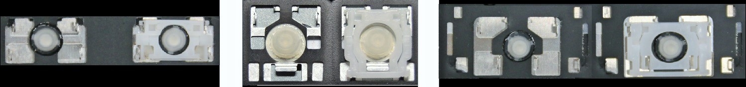 - Bij de meeste toetsenborden die er van buiten identiek uitzien, werden verschillende soorten clips onder de toetsen gebruikt.