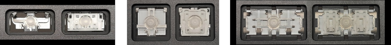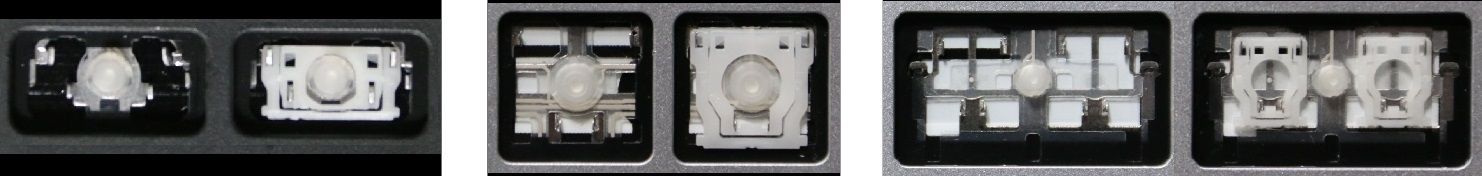 - Bij de meeste toetsenborden die er van buiten identiek uitzien, werden verschillende soorten clips onder de toetsen gebruikt.