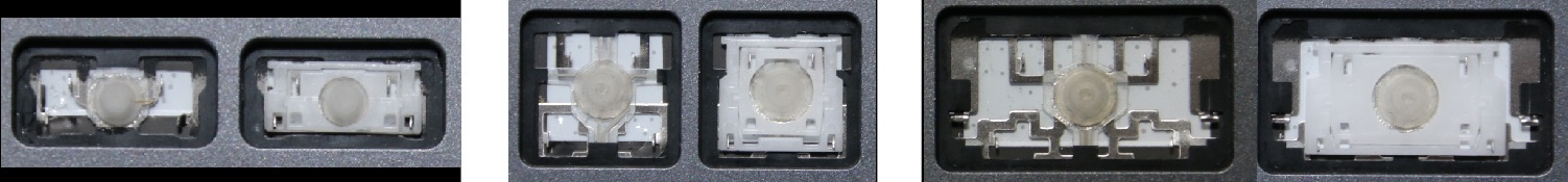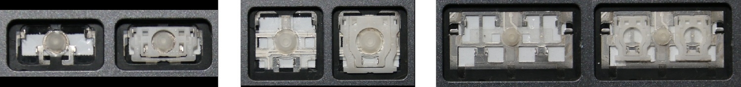 - Bij de meeste toetsenborden die er van buiten identiek uitzien, werden verschillende soorten clips onder de toetsen gebruikt.