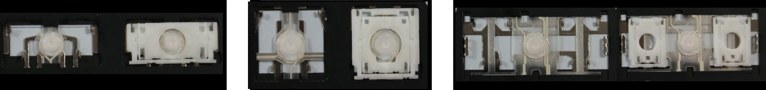 - Bij de meeste toetsenborden die er van buiten identiek uitzien, werden verschillende soorten clips onder de toetsen gebruikt.
