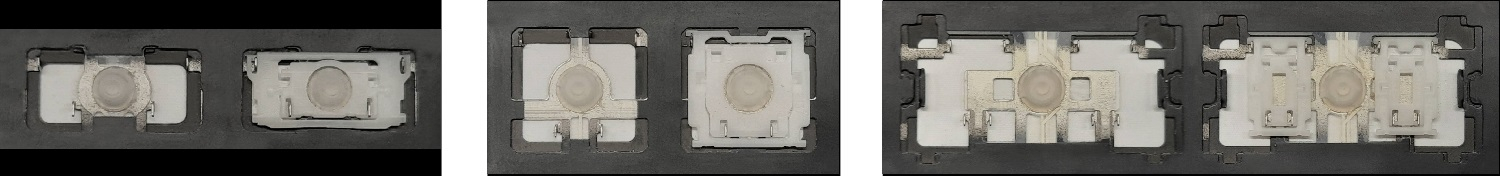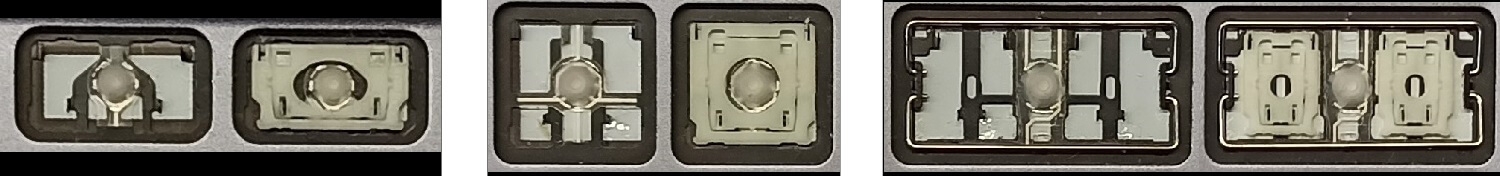 - Bij de meeste toetsenborden die er van buiten identiek uitzien, werden verschillende soorten clips onder de toetsen gebruikt.