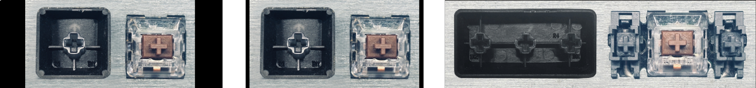 - Bij de meeste toetsenborden die er van buiten identiek uitzien, werden verschillende soorten clips onder de toetsen gebruikt.
