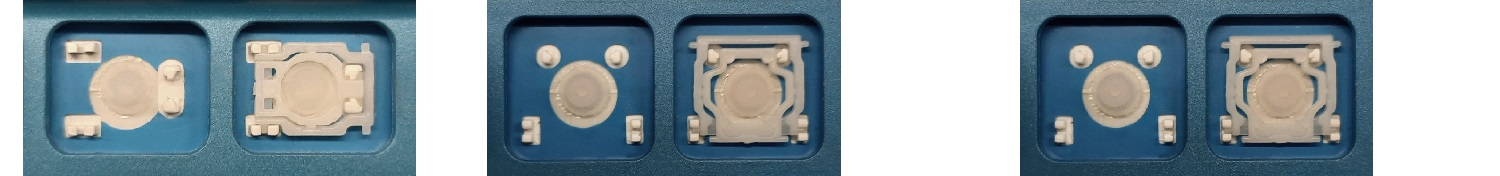 - Om het juiste model te kiezen, vergelijk de lege plek op jouw toetsenbord met de onderstaande foto’s, of verwijder de toets “A” – daaronder zit altijd een middelgrote clip.