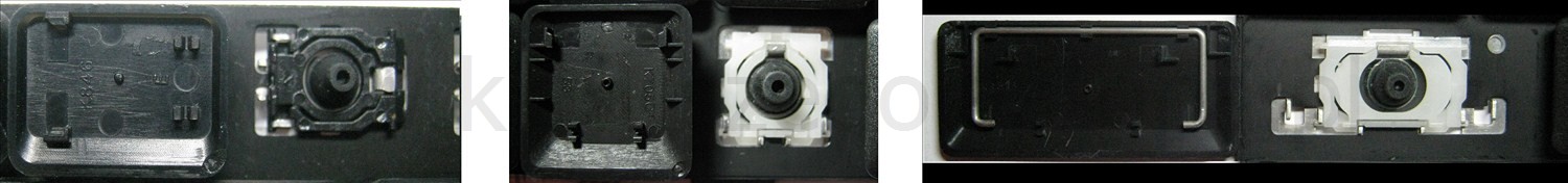 - Om het juiste model te kiezen, vergelijk de lege plek op jouw toetsenbord met de onderstaande foto’s, of verwijder de toets “A” – daaronder zit altijd een middelgrote clip.