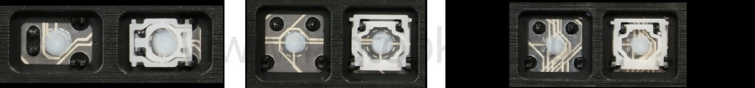 - Om het juiste model te kiezen, vergelijk de lege plek op jouw toetsenbord met de onderstaande foto’s, of verwijder de toets “A” – daaronder zit altijd een middelgrote clip.