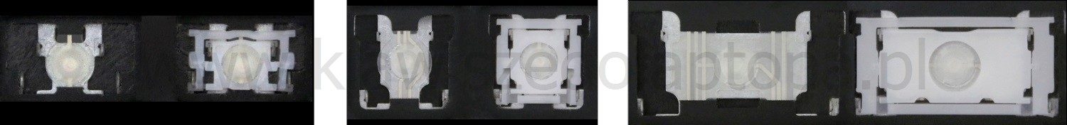 - Om het juiste model te kiezen, vergelijk de lege plek op jouw toetsenbord met de onderstaande foto’s, of verwijder de toets “A” – daaronder zit altijd een middelgrote clip.
