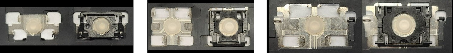- Bij de meeste toetsenborden die er van buiten identiek uitzien, werden verschillende soorten clips onder de toetsen gebruikt.