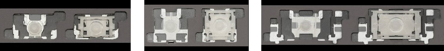 - Bij de meeste toetsenborden die er van buiten identiek uitzien, werden verschillende soorten clips onder de toetsen gebruikt.