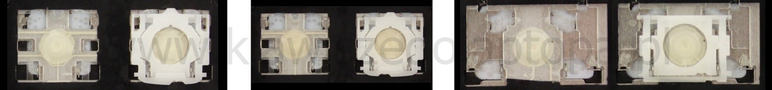- Bij de meeste toetsenborden die er van buiten identiek uitzien, werden verschillende soorten clips onder de toetsen gebruikt.