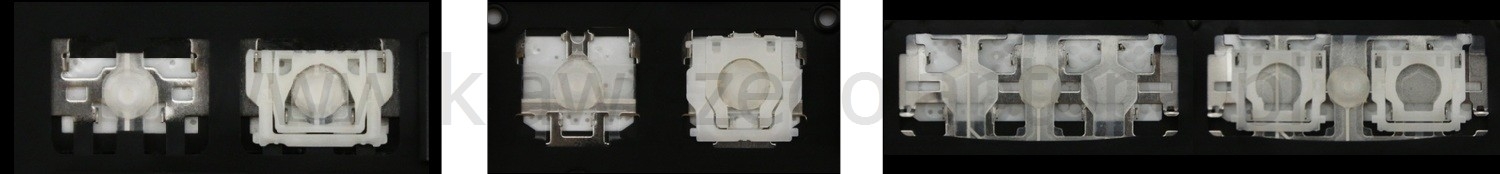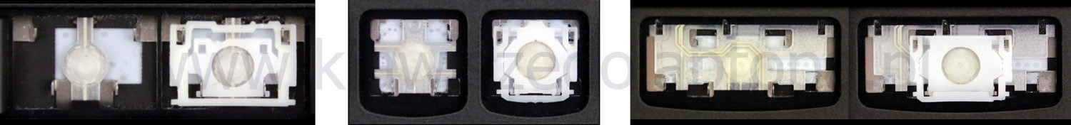 - Bij de meeste toetsenborden die er van buiten identiek uitzien, werden verschillende soorten clips onder de toetsen gebruikt.