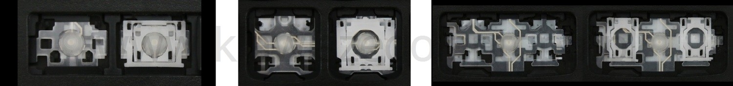 - Bij de meeste toetsenborden die er van buiten identiek uitzien, werden verschillende soorten clips onder de toetsen gebruikt.
