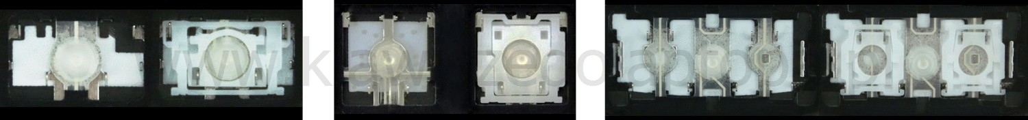 - Bij de meeste toetsenborden die er van buiten identiek uitzien, werden verschillende soorten clips onder de toetsen gebruikt.