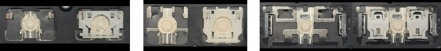 - Om het juiste model te kiezen, vergelijk de lege plek op jouw toetsenbord met de onderstaande foto’s, of verwijder de toets “A” – daaronder zit altijd een middelgrote clip.