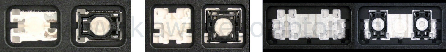 - Bij de meeste toetsenborden die er van buiten identiek uitzien, werden verschillende soorten clips onder de toetsen gebruikt.