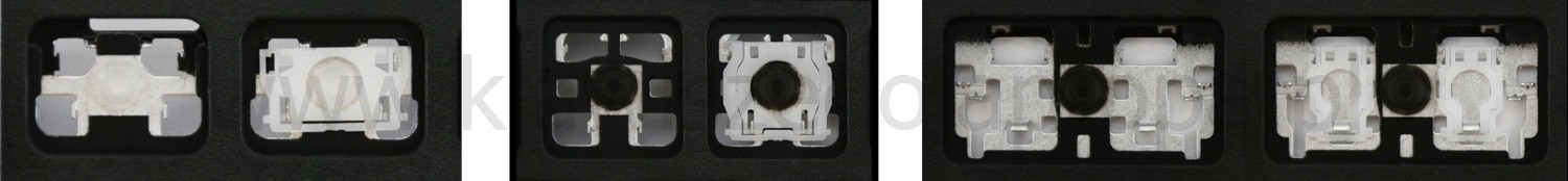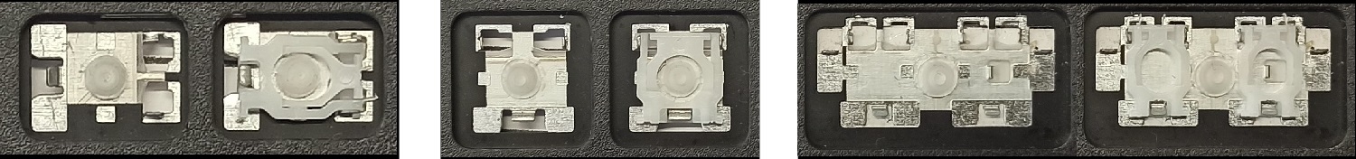 - Bij de meeste toetsenborden die er van buiten identiek uitzien, werden verschillende soorten clips onder de toetsen gebruikt.