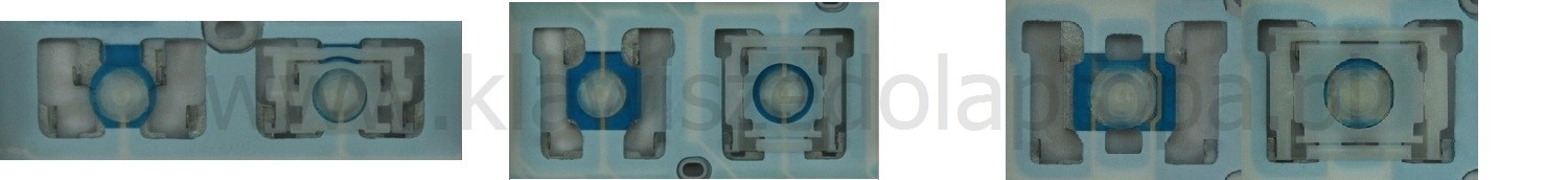 - Om het juiste model te kiezen, vergelijk de lege plek op jouw toetsenbord met de onderstaande foto’s, of verwijder de toets “A” – daaronder zit altijd een middelgrote clip.