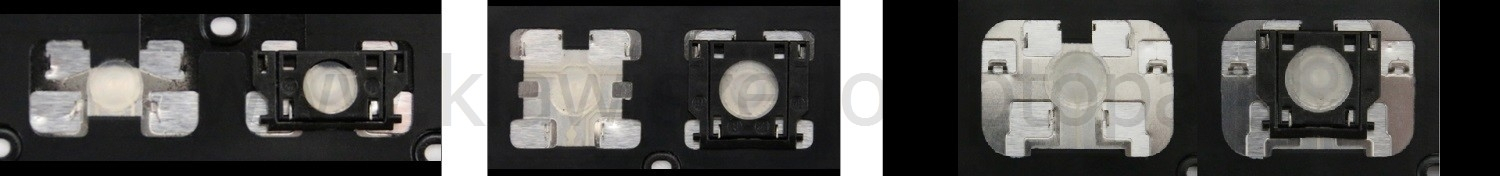 - Bij de meeste toetsenborden die er van buiten identiek uitzien, werden verschillende soorten clips onder de toetsen gebruikt.