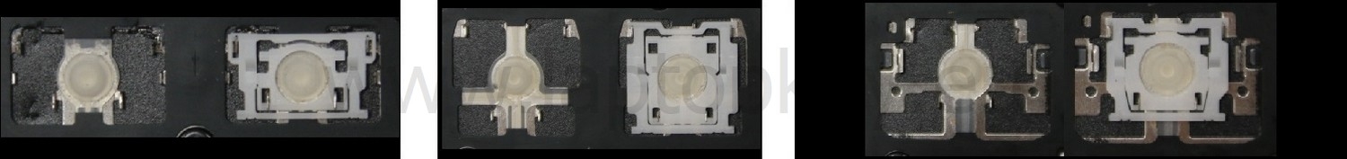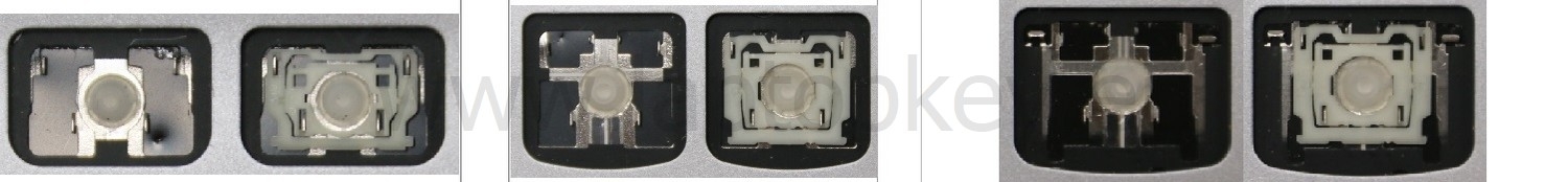 - Bij de meeste toetsenborden die er van buiten identiek uitzien, werden verschillende soorten clips onder de toetsen gebruikt.