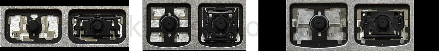 - Om het juiste model te kiezen, vergelijk de lege plek op jouw toetsenbord met de onderstaande foto’s, of verwijder de toets “A” – daaronder zit altijd een middelgrote clip.