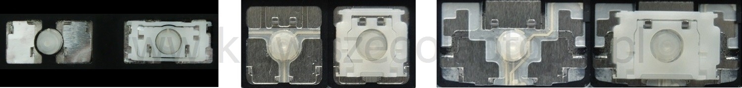 - Bij de meeste toetsenborden die er van buiten identiek uitzien, werden verschillende soorten clips onder de toetsen gebruikt.