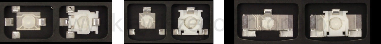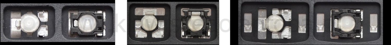- Bij de meeste toetsenborden die er van buiten identiek uitzien, werden verschillende soorten clips onder de toetsen gebruikt.