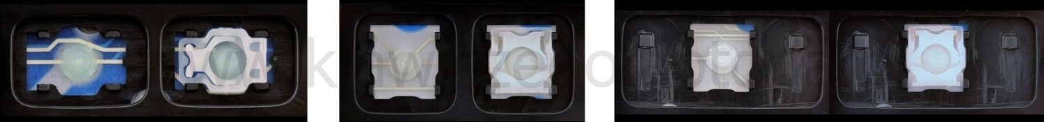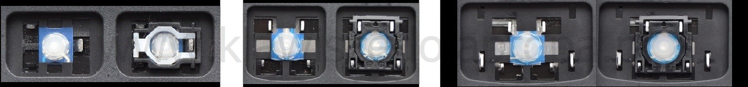 - Om het juiste model te kiezen, vergelijk de lege plek op jouw toetsenbord met de onderstaande foto’s, of verwijder de toets “A” – daaronder zit altijd een middelgrote clip.