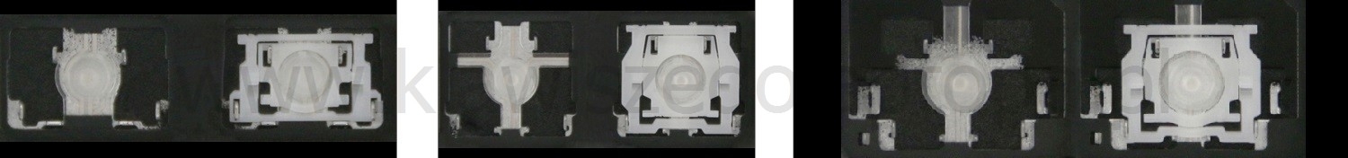 - Bij de meeste toetsenborden die er van buiten identiek uitzien, werden verschillende soorten clips onder de toetsen gebruikt.