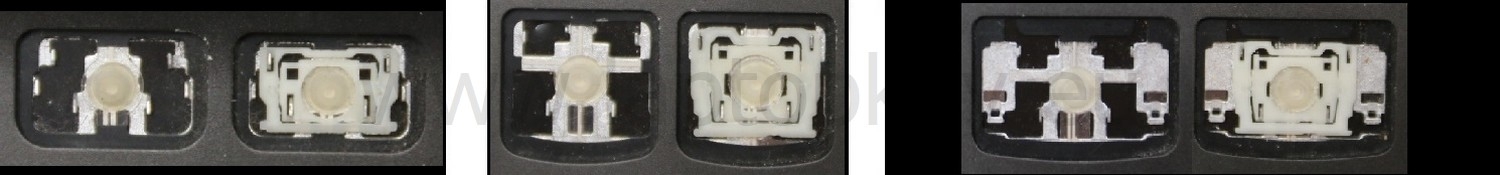 - Om het juiste model te kiezen, vergelijk de lege plek op jouw toetsenbord met de onderstaande foto’s, of verwijder de toets “A” – daaronder zit altijd een middelgrote clip.