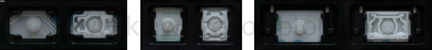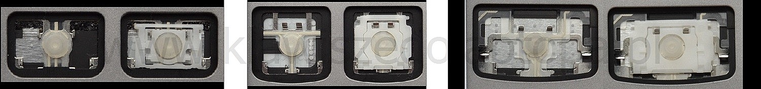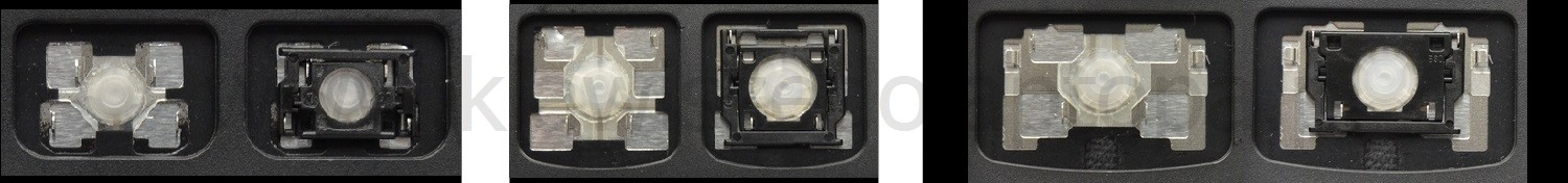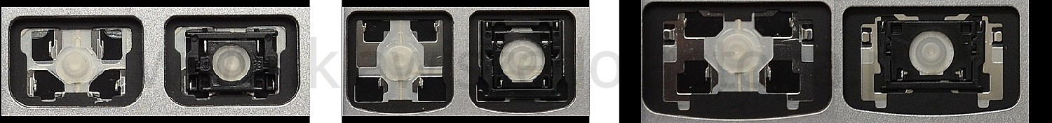 - Bij de meeste toetsenborden die er van buiten identiek uitzien, werden verschillende soorten clips onder de toetsen gebruikt.