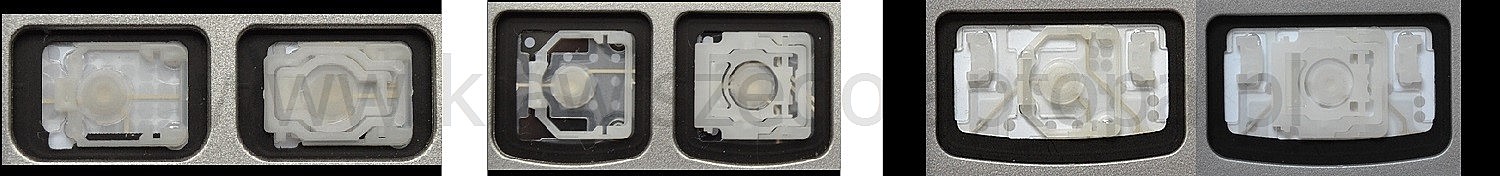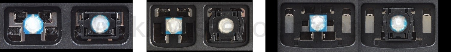 - Om het juiste model te kiezen, vergelijk de lege plek op jouw toetsenbord met de onderstaande foto’s, of verwijder de toets “A” – daaronder zit altijd een middelgrote clip.